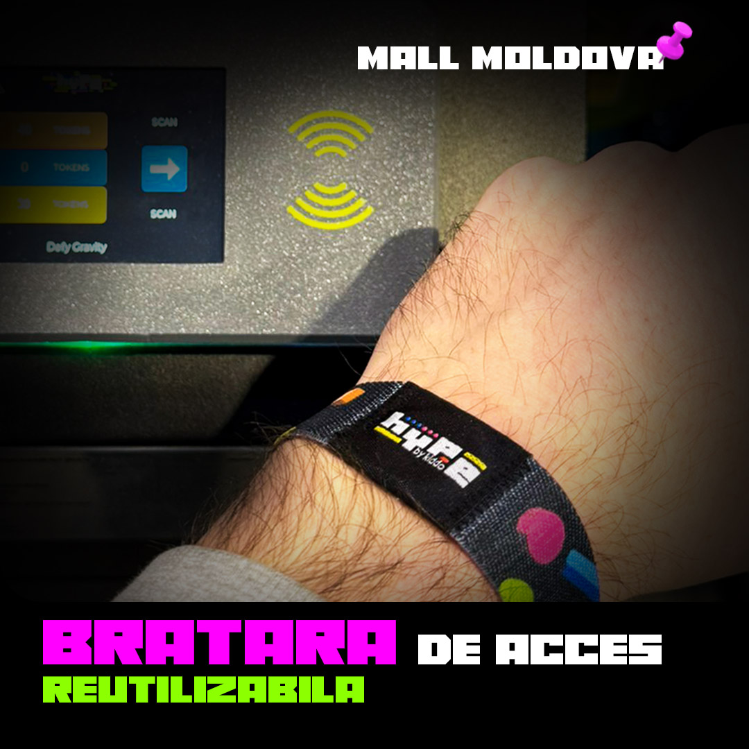 Bratara RFID Hype. Necesara pentru incarcarea tokenilor, timpului sau a punctelor/ticketelor pentru atractii.. Fiecare jucator este obligatoriu sa aiba bratara proprie.
